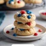While the sprinkles add instant charm, consider serving these cookies with a light dusting of powdered sugar or a drizzle of white chocolate for a sweet finish that complements their patriotic colors and buttery flavor.
