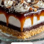Once cooled, spread the Cool Whip evenly over the entire cake surface. It adds a light and fluffy layer that’s a perfect foil to the rich chocolate and caramel underneath. Finally, sprinkle chopped Snickers bars (or your favorite candy bars) all over the top, and if you want an extra touch, drizzle a little more caramel sauce on top for that irresistible gleam and flavor boost.