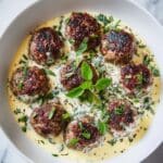 Start by combining all the meatball ingredients in a large mixing bowl. Mix everything by hand just until combined, taking care not to overwork the meat to keep them tender. Then, portion the mixture into small balls roughly 1 to 2 tablespoons each and place them on a parchment-lined baking sheet. Broil on high for 7 to 8 minutes until they are just lightly browned but still juicy inside. This step gives the meatballs a nice crust without drying them out.