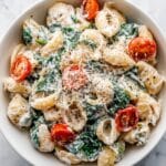 This Artichoke & Spinach Pasta Salad is a vibrant and flavorful dish combining tender farfalle pasta with a creamy, tangy dressing infused with artichoke and spinach dip mix. Bursting with fresh grape tomatoes, kalamata olives, baby spinach, and Parmesan cheese, it’s a perfect make-ahead salad that’s ideal for potlucks, picnics, or a light lunch.