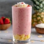 Enjoy a tropical escape with the Bahama Mama Tropical Smoothie, a refreshing and creamy blend of frozen strawberries, pineapple, white chocolate, and shredded coconut, perfectly balanced with unsweetened plant milk and a touch of maple syrup for optional sweetness. This quick and easy smoothie is ideal for a nutritious breakfast or a revitalizing snack.