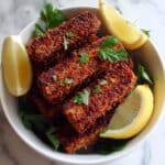 Crispy and flavorful Baked Fish Sticks made with tender white fish fillets coated in a seasoned panko crumb mixture, baked to golden perfection. A healthier alternative to fried fish sticks, this recipe offers an easy and delicious way to enjoy seafood in just 30 minutes.