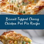 A comforting and hearty Biscuit Topped Cheesy Chicken Pot Pie that combines tender shredded chicken and mixed vegetables in a creamy, cheesy sauce, all baked under a golden, fluffy biscuit topping. Perfect for an easy weeknight dinner that feels like a warm hug.