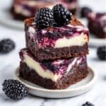 Delight in a rich and creamy dessert with these Blackberry Cheesecake Brownies, featuring a fudgy brownie base topped with a luscious cheesecake layer and swirled with vibrant blackberry jam for a perfect balance of sweet and tangy flavors.