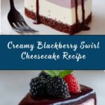 This Blackberry Cheesecake features a creamy cream cheese filling swirled with a fresh blackberry puree atop a buttery graham cracker crust. Baked to perfection with a water bath to ensure a smooth, velvety texture, this American classic dessert is perfect for summer and berry lovers.