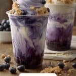 A creamy and refreshing Blueberry Cheesecake Frappuccino blending the rich flavors of espresso, tangy cream cheese, sweet blueberries, and ice into a smooth, delicious iced coffee treat that you can easily make at home.