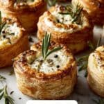 Garnishing your Brie and Jam Puff Pastry Bites Recipe not only enhances their visual appeal but also adds subtle flavors and textures. Fresh thyme brings a herbal brightness that pairs perfectly with the cheese and fruit, while chopped pistachios or pecans lend a satisfyingly crunchy contrast.
