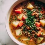 This hearty Carrot and Lentil Soup features tender lentils simmered with aromatic vegetables, smoked ham hocks, and fresh herbs, creating a comforting and flavorful dish perfect for chilly days. The slow cooking process melds savory, smoky, and earthy flavors into a nutritious and satisfying meal.