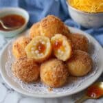 Cheesy Sicilian Arancini Balls are golden, crispy fried risotto balls stuffed with melted mozzarella and sun-dried tomatoes, flavored with fresh herbs and lemon zest. Perfect as a savory appetizer or snack, these Italian delights bring a rich combination of creamy risotto and gooey cheese in every bite.