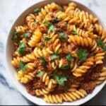 Cheesy Taco Pasta is a quick and flavorful 30-minute dinner that combines tender rotini pasta with seasoned ground beef, zesty salsa, and melted Mexican cheese. This hearty and family-friendly dish blends classic taco flavors with creamy pasta for an easy weeknight meal your whole family will love.