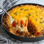 - Add Cheese: Evenly sprinkle shredded cheese over the cooked rice and beef mixture. Cover again and cook for an additional 5 minutes or until the cheese is fully melted.