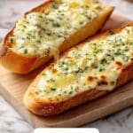 Start by preheating your oven to 400°F and lining a baking sheet with parchment paper for easy cleanup. Place your bread halves cut side up on the sheet. Next, mix the softened butter with minced garlic and garlic powder in a small bowl; this fragrant butter spread is the foundation of your garlic bread’s flavor. Spread it generously over each bread half, then pop them into the oven for 5 to 6 minutes until the edges are lightly toasted and golden. This toasting step locks in that perfect crunch you want while still keeping the bread soft inside.