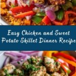 A hearty and flavorful Chicken and Sweet Potato Skillet recipe that combines tender chicken pieces with sweet potatoes and colorful bell peppers, seasoned with aromatic herbs and simmered in a savory broth for a comforting one-pan meal.