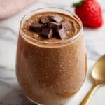A rich and creamy Chocolate Chia Pudding perfect for a nutritious breakfast or guilt-free dessert. Made with plant-based soy milk, Greek yogurt, cacao powder, and naturally sweetened with maple syrup, this pudding is packed with protein, fiber, and antioxidants. Topped with fresh strawberries, cacao nibs, and peanut butter, it’s a delicious and wholesome treat that requires minimal prep and no cooking.