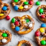 Definitely. This Christmas Pretzel Hugs Recipe is perfect for prepping ahead—just store them in an airtight container and add the M&M garnish right before serving if you want them fresh and colorful.