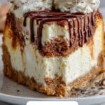 This Cinnabon Cheesecake combines a creamy, rich cheesecake with a delightful cinnamon swirl reminiscent of the famous cinnamon roll. It features a buttery graham cracker crust, a luscious cream cheese filling accented with cinnamon sugar swirls, and a smooth cream cheese frosting topping perfect for any occasion or holiday dessert.