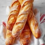 If you don’t finish your baguettes the same day, wrap them tightly in a clean kitchen towel or beeswax wrap to keep the crust from softening too much. Store at room temperature and consume within 1 to 2 days for the best texture.