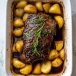 This classic pot roast recipe delivers a tender and flavorful beef chuck roast slow-braised with aromatic vegetables and fresh rosemary, perfect for a hearty Sunday dinner. Seared to develop a rich crust and then cooked low and slow in the oven, the roast becomes melt-in-your-mouth delicious, served alongside savory carrots, potatoes, and onions.