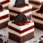 These Cookies & Cream Red Velvet Brownies combine the rich, velvety flavor of red velvet cake with a creamy cheesecake swirl and crunchy Oreo topping. Perfect for dessert lovers, this easy-to-make treat features a moist, tender brownie base enhanced with a luscious cream cheese layer and finished with a delightful cookie crunch.