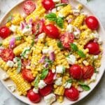 Place any leftover Corn Salad Recipe in an airtight container and refrigerate. It will keep well for up to 2 days, although it’s best enjoyed fresh to retain the crispness of the veggies. Give it a gentle toss before serving to redistribute the dressing.
