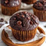 Pair these muffins with fresh berries, a side of Greek yogurt, or even a scoop of vanilla ice cream for a simple yet delightful treat. A hot cup of coffee or a glass of cold milk complements the rich chocolate perfectly, making for a comforting combo any time of day.