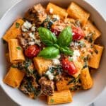 Now that you have this incredible Creamy Sausage Rigatoni with Spinach and Tomato Garlic Cream Sauce Recipe at your fingertips, it’s time to roll up your sleeves and cook something truly special. This dish is pure comfort in every bite, packed with vibrant flavors and creamy indulgence that’s perfect for any occasion. Trust me, once you try it, it just might become your new go-to pasta favorite!