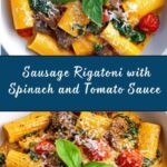 Creamy Sausage Rigatoni with Spinach and Tomato Garlic Cream Sauce Recipe