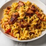 Start by bringing a large pot of salted water to a lively boil. Cooking your pasta until it’s perfectly al dente is key—this means it should be tender but still have a slight bite, so it holds up beautifully when tossed in the sauce. Be sure to save half a cup of the pasta water before draining; this starchy liquid is magical for adjusting your sauce’s consistency later on.