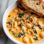 To take your bowl of Creamy Tuscan Chicken Soup Recipe to the next level, sprinkle a bit of extra Parmesan on top and add a drizzle of good-quality olive oil. Fresh cracked black pepper and a few torn basil leaves or extra spinach also make bright, fresh garnishes that contrast beautifully with the rich soup.