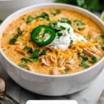This creamy white chicken chili is a comforting and hearty dish featuring tender shredded chicken, white beans, and a blend of aromatic spices. It’s made on the stovetop with a perfect balance of creamy sour cream and zesty lime juice, creating a deliciously rich chili that’s ideal for a cozy dinner. This recipe is easy to prepare and great for a crowd, offering a warm and flavorful twist on traditional chili.