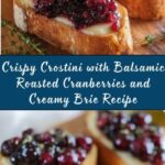 This festive appetizer features crispy crostini topped with balsamic roasted cranberries and creamy Brie cheese, creating a perfect balance of tart, sweet, and savory flavors ideal for holiday gatherings or elegant parties.