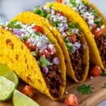 These Crispy Ground Beef Tacos offer a perfect blend of seasoned beef, melted cheese, and crispy tortillas for a delicious and satisfying Mexican-American main course. Quick to prepare on the stovetop, they’re ideal for taco nights and family dinners, with customizable optional toppings to suit your taste.