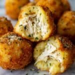 Crispy Potato Croquettes with Creamy Chicken Filling are golden fried bites combining fluffy mashed potatoes and a savory cream cheese and chicken center. Perfect as a flavorful appetizer or snack, these croquettes offer a delightful crispy exterior paired with a rich, creamy inside.