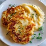 To highlight the cozy, rustic charm of crispy potato pancakes, simple garnishes like a dollop of sour cream or a spoonful of applesauce are unbeatable. These add richness and a touch of sweetness or tang that perfectly complements the potato’s savory flavor. Fresh herbs like chopped parsley or chives sprinkled on top also brighten up the dish and add an inviting aroma.
