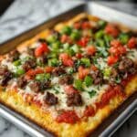 This Crispy Sheet Pan Taco Pizza: Family Favorite Delight! is more than just a meal; it’s a celebration of two beloved comfort foods in one effortless dish. Whether you’re feeding a hungry family or looking to impress friends at a casual gathering, this recipe delivers on flavor, texture, and fun. I encourage you to make it your own, customize as you like, and enjoy all the smiles that come with every crunchy, cheesy, taco-filled bite!