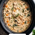 Cover and cook on low for about 6 to 7 hours, or on high for 3 to 4 hours. This slow cook method is the secret to tender chicken and well-developed flavors, while the vegetables become perfectly softened, creating the hearty base of the soup.