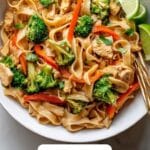 Drunken Noodles (Pad Kee Mao) is a classic Thai stir-fried noodle dish featuring wide rice noodles, tender chicken, fresh vegetables, and aromatic Thai basil in a bold, flavorful sauce with a spicy kick. Ready in just 35 minutes, this vibrant and satisfying dish balances sweet, salty, tangy, and spicy notes for an authentic and delicious meal perfect for any weeknight dinner.