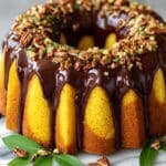 Consider presenting the cake on a rustic wooden board or a bright, colorful plate to contrast with the deep brown ganache. For festive occasions, add edible gold leaf flakes or candy pearls on top. You could also cut small bundt cake slices and serve them as individual mini desserts with a drizzle of extra ganache.