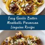 Easy Garlic Butter Meatballs Served Over Creamy Parmesan Linguine Recipe