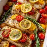This Easy Mediterranean Baked Fish recipe offers a flavorful and healthy way to enjoy tender fish fillets infused with fragrant herbs and surrounded by vibrant vegetables. Perfect for a quick weeknight dinner, it combines fresh thyme, rosemary, oregano, and parsley with juicy cherry tomatoes, olives, zucchini, and onions, all baked to perfection in the oven.