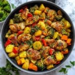 This Easy One Pan Chicken and Veggies recipe delivers a healthy and flavorful meal with minimal cleanup. Juicy chicken breasts or thighs are seasoned and roasted alongside an assortment of fresh vegetables, creating a nutrient-rich dish that’s perfect for busy weeknights. With a touch of olive oil and optional lemon juice and parmesan, it offers a balanced dinner that’s both delicious and convenient.