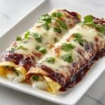 This enfrijoladas recipe freezes well for meal prep or busy weeknights. Wrap individual portions tightly in plastic wrap and foil before freezing for up to two months. Just thaw overnight in the fridge before reheating.