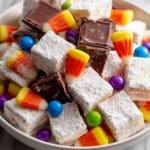 Elevate your Fall/Halloween Buddy Mix Recipe by sprinkling a handful of festive sprinkles, chopped nuts, or even a pinch of sea salt on top before the chocolate hardens. These little touches add extra flair and flavor to your snack mix, making it even more fun for Halloween parties or cozy fall nights.