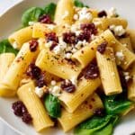 A bright and refreshing Feta & Cranberry Rigatoni Salad tossed with a zesty lemon vinaigrette. This easy-to-make pasta salad combines creamy feta, sweet dried cranberries, crisp cucumber, red onion, and juicy cherry tomatoes, creating a perfect balance of flavors and textures. Ideal for quick lunches, picnics, or as a vibrant side dish.