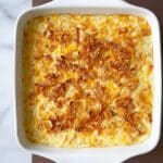 - Assemble and Top: Spread the mixture evenly into the prepared 9×13-inch baking pan. Sprinkle the French fried onions evenly over the top to add a crunchy, savory finish.