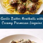 6. Serve: Plate the creamy Parmesan linguine and generously top with the garlic butter meatballs. Garnish with fresh chopped parsley and serve immediately while hot.