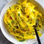 After you turn off the heat, stir in the remaining tablespoon of butter and the parsley. This final addition makes the noodles glossy, rich, and fragrant, while the parsley adds a fresh, vibrant touch that lifts the overall flavor profile.