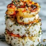 Turn up the wow factor by layering the rice and shrimp inside clear glass cups to make individual parfait-style servings. For a family-style feast, assemble multiple stacks on a large platter garnished with lots of herbs and lemon wedges, inviting everyone to serve themselves. This Garlic Butter Shrimp and Rice Stack Recipe is as fun to plate as it is to eat!