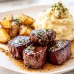 Cooking the Garlic Butter Steak Bites with Cheesy Smashed Potatoes Recipe is like creating a little celebration on your plate. The combination of buttery steak, garlicky depth, and cheesy, crispy potatoes delivers a meal that’s comforting yet special. I wholeheartedly encourage you to give this recipe a try and watch it become a beloved favorite in your kitchen as it is in mine!