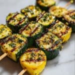 Delicious and easy-to-make Garlic Butter Zucchini Skewers grilled to perfection with a flavorful garlic butter and oregano seasoning. Perfect as a healthy appetizer or side dish for summer barbecues and weeknight dinners.